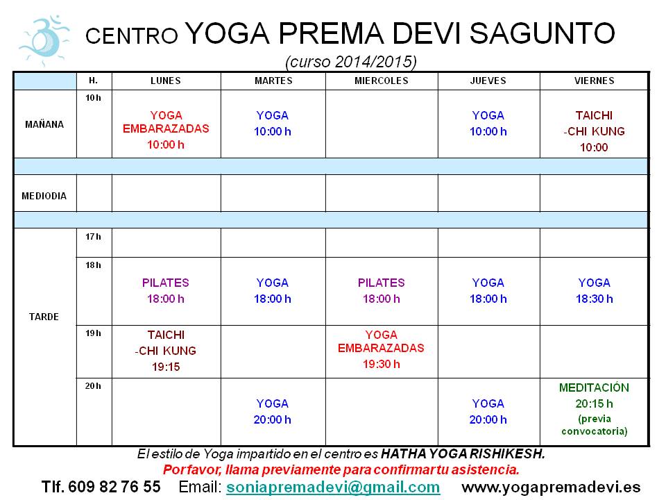 Horario2014-15 Yoga Horario2014-15 Yoga- Oct14